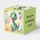 This favour boxes feature a cute little dinosaur with a lovely face framed by lots of colourful balloons. Great favour box for children's birthday party! Custom background and text.