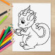Cute cartoon illustration of a little dragon holding a teacup. Perfect for colouring.
