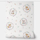 Cute Little girly Fall Fox wallpaper with flowers and leafs on cream background. Soft colours: cream, sand, lilac, blue. Perfect for your little girls nursery or kids room!