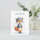 A small fox stands upright, holding a cup in its paws. It wears a knitted hat and a scarf while snowflakes gently fall from the sky. The fox has a happy expression on its face. The scene is set in a winter landscape, with snow covering the ground. The atmosphere shows the joy of the season as the fox enjoys its warm drink. This moment captures a cheerful expression surrounded by the beauty of snow.