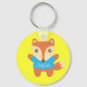 A cute key chain with a cartoon of a reddish brown little fox which is wearing a blue t-shirt with name. Personalise with child's name on fox's T-shirt. Colourful and attractive, kids will love this little animal! Background colour can be changed in customisation mode.