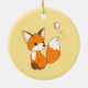 Cute Little Fox Watching Butterfly on Yellow Ceramic Tree Decoration