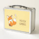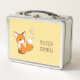 Cute Little Fox Watching Butterfly on Yellow Metal Lunch Box