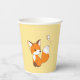 Cute Little Fox Watching Butterfly on Yellow Paper Cups