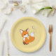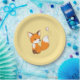Cute Little Fox Watching Butterfly on Yellow Paper Plate