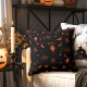 Celebrate spooky season in style with this Halloween throw pillow featuring the season's essentials along with an adorable little ghost, new in town, trying his best to be scary