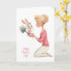 Cute Little Girl Bunny Bringing Mama Flowers Card