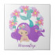 Add a personal touch with a custom-made ceramic tile. Cute Little Girl Mermaid Purple Pink Flower Personalised on a Decorative Ceramic Tile. The tile is perfect for adding a unique style to your home decor, whether you use it as a coaster, a wall hanging, a trivet, on a bathroom wall, or as a kitchen backsplash. Available in two different sizes. Great gift idea.