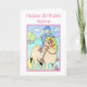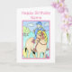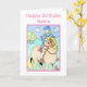 Birthday card featuring a cute cartoon of a palomino pony with a little girl jockey rider with the words Happy Birthday. Horse and rider are in a green meadow with trees beneath blue sky and white fluffy clouds. Easily edit the template text on the front and inside of this card to personalize the card with your own message. Lovely card to send a horsey person on their birthday. Thanks for viewing my designs!