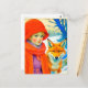 Cute Little Girl With Fox Chritmas Vykort. Vintage Scandinavian style, Sweedish style.