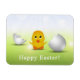 Cute Easter illustration: little chick hatched out of an egg and sitting next to the broken eggshells.