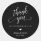 Modern Wedding Minimalist Thank You Gifts Classic favour Round Sticker, in classy script, cute little heart, with bride and groom name and wedding date, in black and white theme.