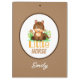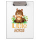 Cute little brown horse with green grass, flowers and text LITTLE HORSE