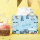 Give your little policeboy or policegirl his or her own policeman-themed custom wrapping paper! Gift wrap has two police officers -- one a boy and one a girl. Both are wearing sunglasses, hats, and have badges, and one is holding handcuffs. There is a prisoner next to the officers as well as a police dog and a cop car. Surveying the scene from the air is a policeman helicopter. Customise the wrapping paper with your son or daughter's name, preceded by the text Chief or the text of your choice.