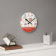 Add a special touch to the bedroom or nursery of the little boy or girl farmer in your life with this adorable custom farm pattern clock. Clock has a watercolor tractor, barn, and hay. There is also a place for the first name of your little one on top of a red background (red colour may be changed in the personalisation area, per your preference; name and background may also be removed).