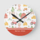 Cute Little Kids Farmer Pattern with First Name Round Clock