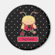 This fridge magnet has a cute children's design of a blondehair little girl dressed up like a ladybug. There is a black and white polkadots pattern in the background with a ladybug at the bottom. Graphics by Stockberry Studio at Mygrafico