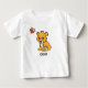 T-Shirt with cute little lion in yellow-orange and a red bird. You can customise the name, font, size and placement, the text is fully editable. Also you can change the image size. On the back is a small bee.