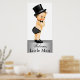 Little man baby shower poster with adorable brunette dark hair little baby wearing a top hat, bow tie and dress shoes, and a cute black diaper. You can add the text of your choice, and add a background colour.