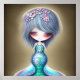 Cute Little Mermaid teal flowers face gift Poster