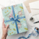 Cute Little Monkeys with bananas & leafs mint Wrapping Paper