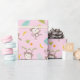 Cute Little Monkeys with bananas & leafs pink Wrapping Paper