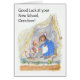 A 'Good Luck at your New School' greeting card for a Grandson, with a little mouse leaving Mousehole Cottage to set off for his first day at school. This design is from a hand-painted watercolour illustration by Judy Adamson. You can personalise the inside message.