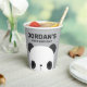 This design features cute little panda bear with personalised name in grey modern sans serif font style on light grey background.