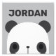 This design features cute little panda bear with personalised name in grey modern sans serif font style on light grey background.