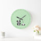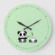 A pair of cute cartoon pandas. The left panda is holding a bamboo stick watching the right panda who has fallen asleep.