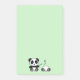 A pair of cute cartoon pandas. The left panda is holding a bamboo stick watching the right panda who has fallen asleep.