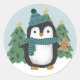 Cute Little Penguin and Gingerbread Man Christmas Classic Round Sticker