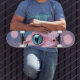 Cute Little Pink Lizard with Big Blue Eyes Skateboard