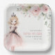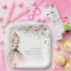 Cute Little Pink Princess Rose Floral Birthday Paper Plate