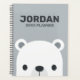 This design features cute little polar bear with personalized name in gray modern sans serif font style on light gray background.