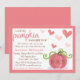 These cute pumpkin invitations are perfect for anyone celebrating a baby shower this fall time. The design features a cute pink pumpkin with matching love hearts and easy to personalise template wording. Matching items can be found in the collection.