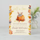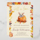 This cute baby shower invitation card features a rustic illustration of a pumpkin with cute puppy surrounded by autumn foliage and gold foil leaves. The invitation says "Fall in love with baby....." allowing you to add your baby's family name. Perfect for a gender neutral baby shower for a boy or a girl during fall and the Thanksgiving season.