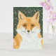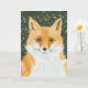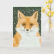 Digital realistic drawing of a cute little red fox with a background of snow flakes falling in the forest. This winter season design would be perfect as a Christmas holidays card. This design has a fixed background, but you can change the size and position of the image and add your own text. The inside of this card has a small image of the little fox. You can change or remove this image and change the card's background color.