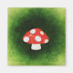 A cute illustration of a spotted red mushroom. Background is a green weathered texture, the colour reminiscent of a lush green forest where you might find these adorable little fungi. The toadstool mushroom is a magical mystical symbol which can help add whimsy and mystery to your home and your life.