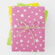Cute little stars wrapping paper in pink, lime, and yellow.
