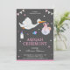 Invite your guests with this cute aqiqah card featuring an adorable little stork bird carrying a baby girl against a grey background. Simply add your event details on this easy-to-use template to make it a one-of-a-kind invitation. Flip the card over to reveal a pink and white stripes pattern on the back of the card.