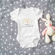 Cute and modern baby bodysuit features graphic yellow sun, heart and "mama's little sunshine" in modern font. Customise the name to whatever your need is.