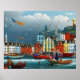 Cute Little Tourist town Modern whimsical fantasy many houses harbour storm mountain