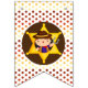 Cute little western cowboy age 1 birthday bunting flags - Neutral birthday decor in orange, brown and yellow. The design features a cute little cowboy, cactus, a sherif star, a horse shoe and a toy horse. Add any sweet message you like on the banner and customise for a child of any age. Mix and match with other products from my store. Yeehaw!