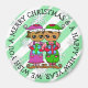 Cute little ethnic elves and snowflakes, whimsical cartoon drawing Christmas refrigerator magnet.