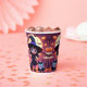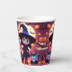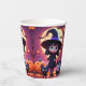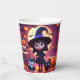 This Paper Cups features a cute little witch in a black costume with cats and pumpkins on Halloween night.