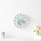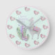 Cute llama nursery clock or wall clock for your little girls bedroom. The sweet wording reads "have a llamazing day" in decorative typography. This design has an adorable watercolor illustration of a soft grey llama, complete with tassels and saddle mat, cactus plants and heart-shaped cacti. The colour palette is pastel mint green with girly shades of pink and purple. Please browse our store for matching and coordinating items.