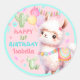 Cute Llama Fun Colourful 1st Girl Birthday Classic Round Sticker