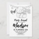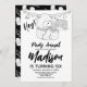 Cute Llama Kids Birthday Party Black White Invitation