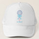 A cute, pastel pink and blue lollipop with blue ribbons tied into a bow adorns this hat. The text says, "So Sweet!" on it, but you can edit that that to say what you want or remove it entirely.